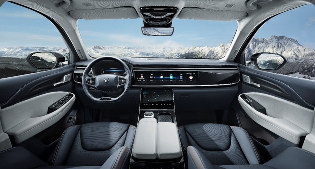 ΑRCFOX α-T采用全球顶级智能座舱中枢哈曼系统,使用4*4超级交互大屏设计,其中935mm的中控宽屏是全球首创20.3寸最宽4K定制化大屏,宽度相当于3个iPhone XS MAX相连,以智能交互带给用户影院般的视听感受。音响方面,ARCFOX α-T使用哈曼Quantum Logic沉浸式环绕声技术,为乘客提供广阔而自然的环绕声体验。同时,ARCFOX α-T还采用人脸、情绪、手势、声纹、触摸等多维识别技术。