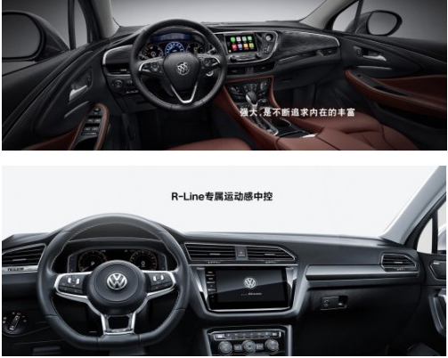 内饰设计风格上,别克昂科威和大众途观L同样也是两种风格。昂科威整体采用的是环抱式的设计风格,内饰配色上也采用了拼色设计,黑色的中控台配合棕色材质的座椅,凸显了豪华感。途观L在内饰设计上则更多的是体现了德国人的严谨与一本正经,更多平直线条的应用,让途观L内饰更具典雅风,但是全黑的配色缺少了昂科威豪华的一面。